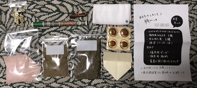初心者に嬉しい「セルフケアお灸キット」は、日曜日までにお申し込みいただければ木曜日には多分届く、とのこと。キットがなくても、なんとなく参加することももちろん可能です。